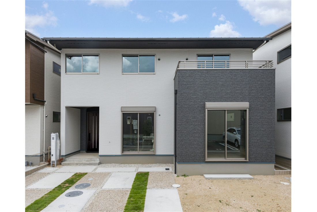 キッチンカラーもダークカラーで統一。フラットな天板が広いリビングをより一層広く見せています。